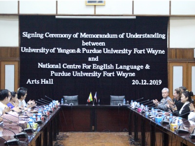Purdue University Fort Wayne နှင့် ရန်ကုန်တက္ကသိုလ်၊ အင်္ဂလိပ်ဘာသာစကား အမျိုးသားဗဟိုဌာနတို့အကြား နားလည်မှုစာချွန်လွှာ လက်မှတ်ရေးထိုးပွဲ ...